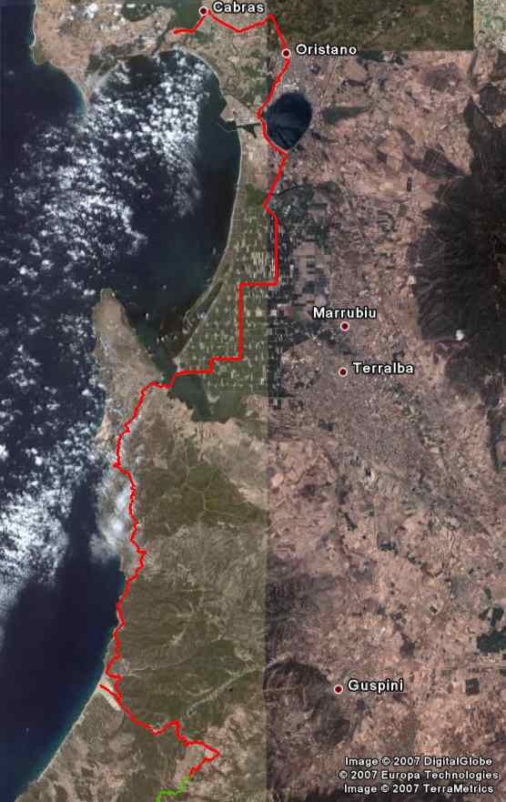 Sardininen - 14. TagVom Agriturismo Rocce Bianche nach CabrasStrecke als Google-Earth-Screensshot Zuerst hatten wir eine super Abfahrt zu der großen Düne von Piscinas. Der Weg anschließend ging aber dann etwas schwieriger weiter: wir fuhren über holprige Wege und mussten zwei "Flüsse" durchqueren. Aber mit dem Fahrrad alles kein Problem. Unsere Unterkunft:Zimmer waren schön und Essen lecker - wie so oft in den Agriturismi. Auch zu empfehlen Gefahre Strecke:89,4 km - 606 Höhenmeter [ Tag zurück] [ nächster Tag ] |
